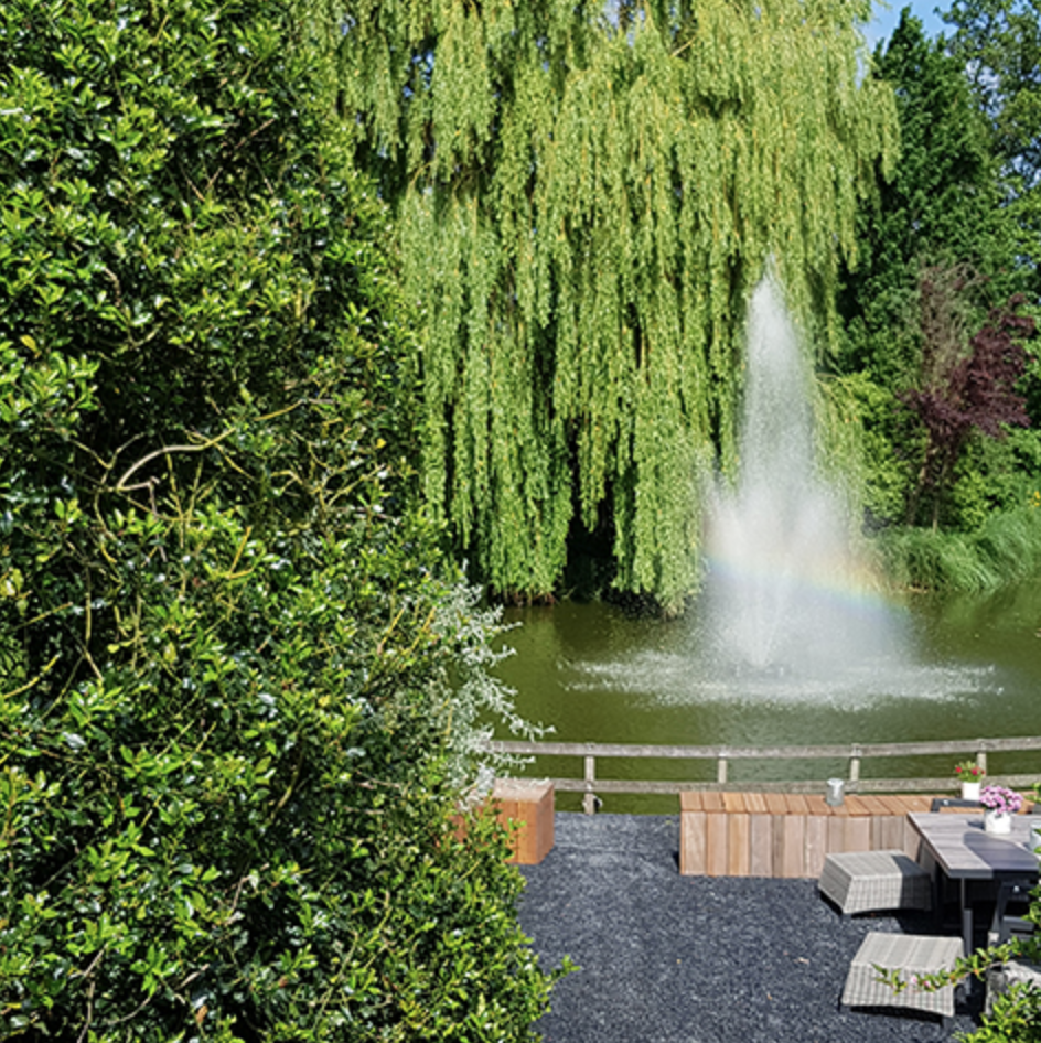 Fonteinen zijn sprankelende inspiratiebronnen die leven geven aan een waterpartij bij u in de tuin. Fonteinen verfraaien het aanzicht en geven een extra dimensie aan de recreatie-, woon- of werkomgeving. Bovendien zorgt een fontein in de vijver voor een goede beluchting waardoor het water gezond blijft.’ Joost Bosch Beregeningstechniek ontwerpt en installeert fonteinen op maat met gebruik van kwalitatief hoogwaardige materialen. We hebben een passende fontein voor elke vijver.